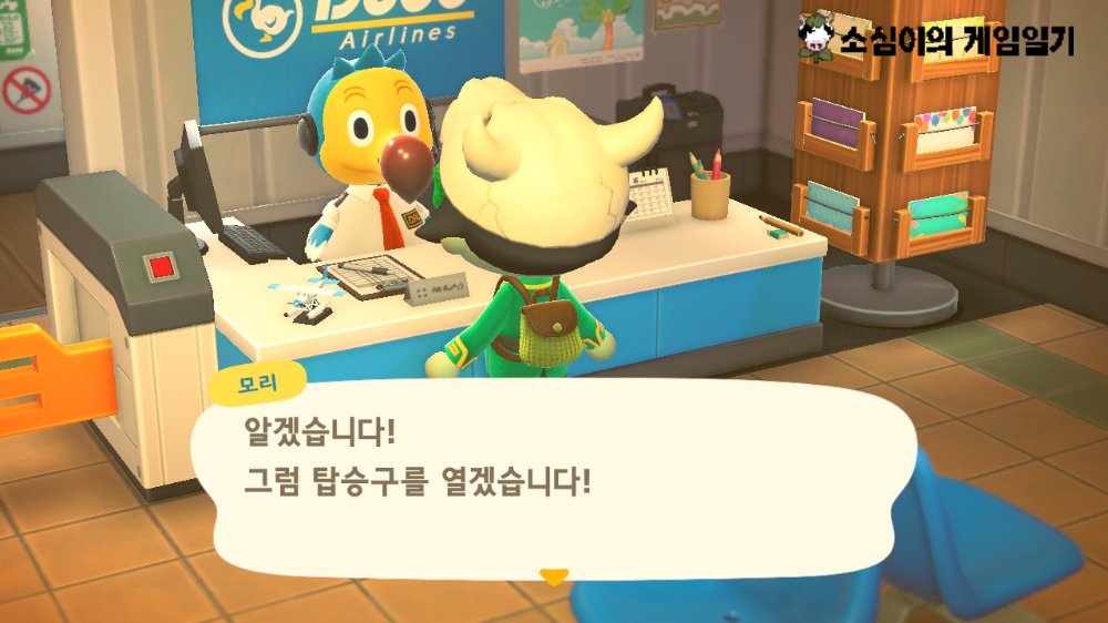*비행장 안의 카운터에 서 있는 도도새에게 말을 걸어