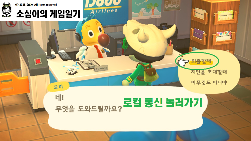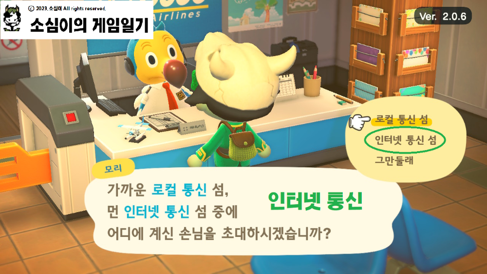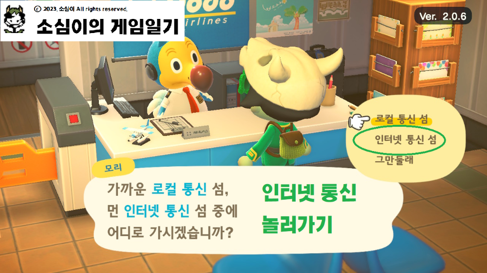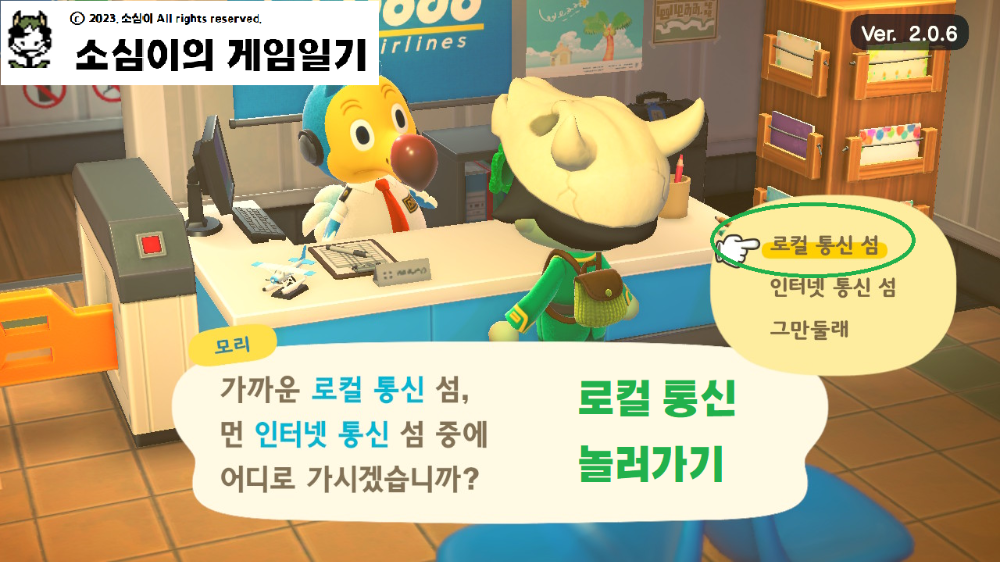 -"외출할래!" ~ "누군가의 섬에 갈래" ~ '로컬 통신 섬' 을 상-하키와 'A'키를 통해 선택한다