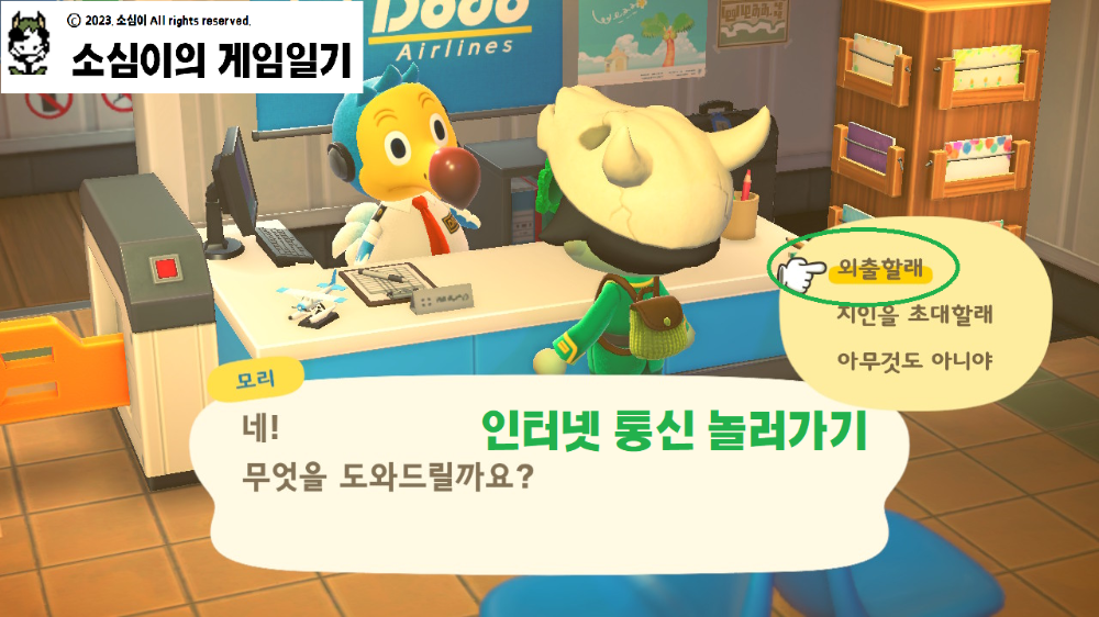 - 이제 모두에게 도도새의 안내가 나오며, 친구가 놀러오거나-내가 친구의 섬에 놀러갈 수 있게 된다 😄