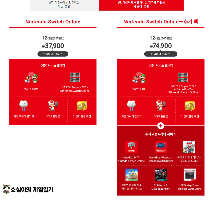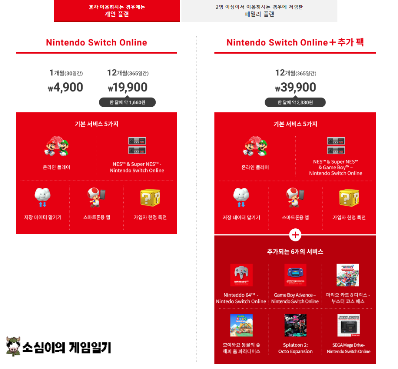 닌텐도 온라인 플랜의 기본적인 가격은 아래와 같습니다 ↓