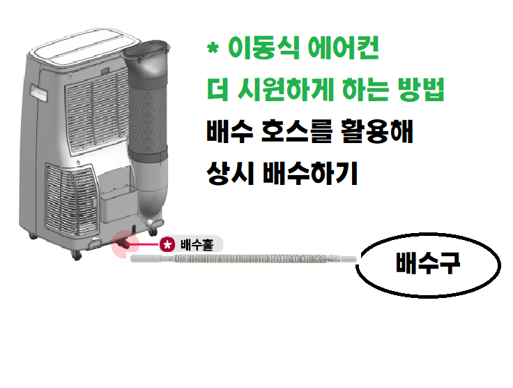 다른 글에서 추천한 별도의 배수통을 활용한 상시 배수는 이동식 에어컨 사용자에게는 추천하지 않는다