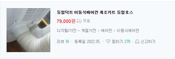 검색어는 " 듀얼 덕트 이동식 에어컨 개조 "로 치면 판매처가 검색된다